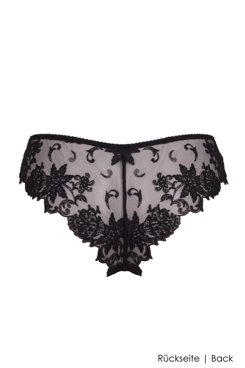 - Floral bestickter Mikrotüll an den Seiten und auf dem Po – sinnlich transparent
