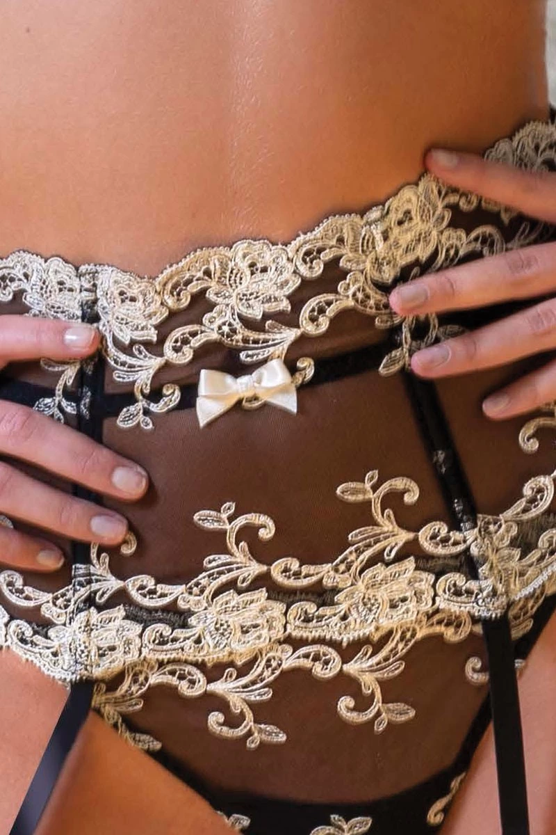 Am besten mit einem Paar unsere feinsten Nylons und den ergänzenden Dessous der Platinum Serie getragen, läuft dieser von Hand gefertigte Strapsgürtel zu seiner Höchstform auf. Alle Dessous der Luxus-Marke Ambra sind 100% proudly made in Italy. Die herausragende Verarbeitungsqualität dieses eleganten 4-fach Strapsgürtels steht dabei für eine längst verloren geglaubte Handwerkskunst. Die champagnerfarbenen Stickereien bilden einen wunderschönen Kontrast zum schwarzen Stretch-Tüll. Eingearbeitete, weiche Stäbchen sorgen für die optimale Passform des elastischen Strapsgürtels in der Taille. Damit aber nicht genug. Auch Deine Beine erfahren eine optische Streckung die Deine Beine wunderschön aussehen lassen. Gönne Dir diesen Klassiker des gehobenen Boudoirs und genieße das magische Tragegefühl einzigartiger Dessous made in Italy.