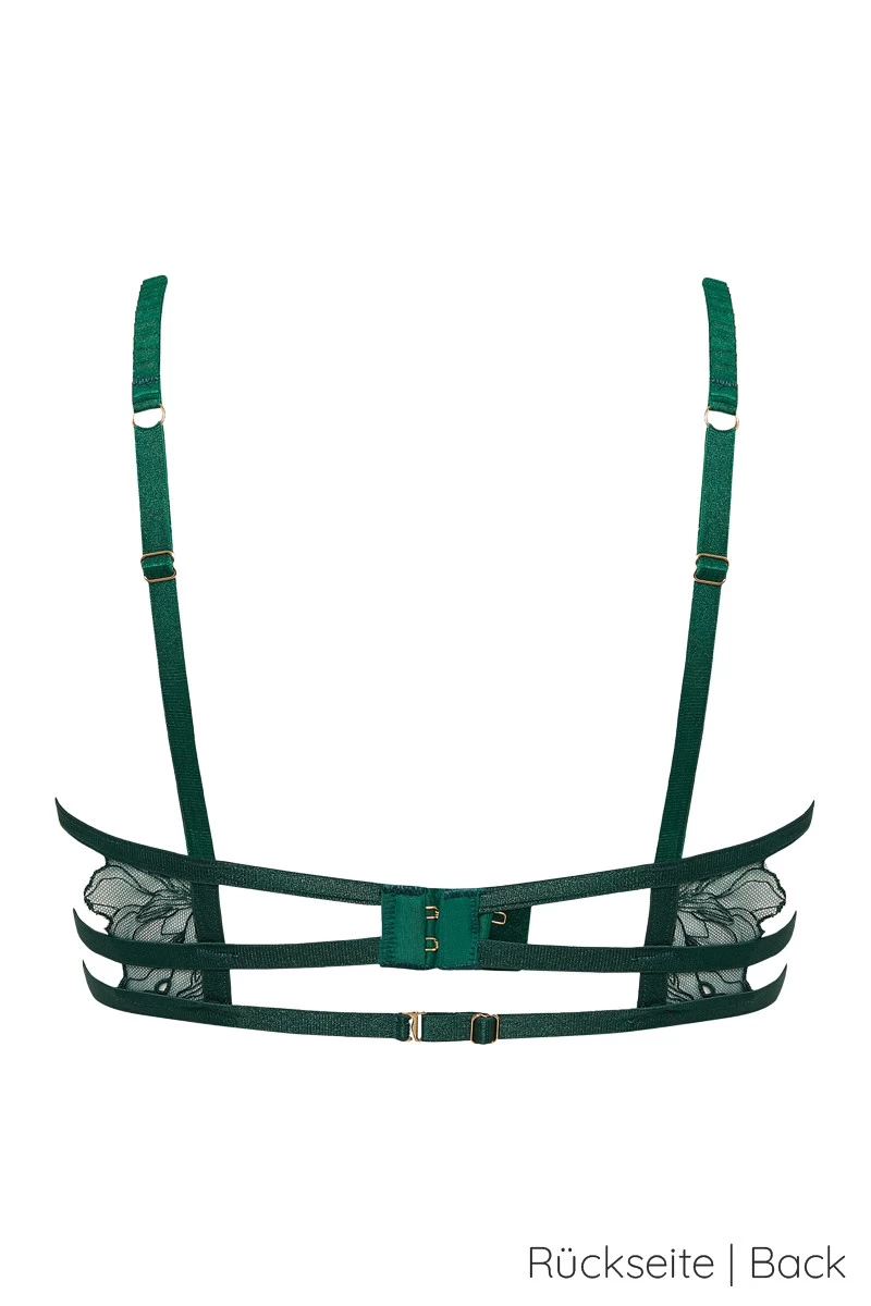 Dieser sinnlich transparente BH aus floral besticktem Tüll, glänzenden Satinbändern und gold glänzenden Schmuckdetails, versprüht einen festlich opulenten Flair der Dein Repertoire bereichern wird. Das sexy Design bietet eine hervorragende Passform und sollte unbedingt mit dem passenden G-String oder Brazilian Slip der Astra Serie getragen werden. In Kombination mit dem ebenfalls erhältlichen Thigh Harness Strapsgürtel und einem Paar unserer exklusiven Strapsstrümpfe, bietet sich Dir eine einzigartige Reizwäsche Kombination die Dich und Deine/n Partner/in begeistern wird.