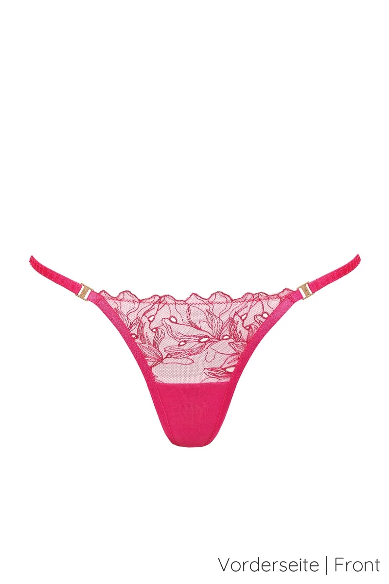 Bei diesem eleganten G-String erzeugt die Kombination aus grün glänzenden, elastischen Satinbändern, floralen Stickereien auf hochwertigem Mesh und gold glänzende Schmuckdetails einen festlich, opulenten Look mit sinnlichen Transparenzen. Ob als sexy Überraschung zur Weihnachtszeit oder als modische Ergänzung zu Deinen Lieblingsoutfits, in Kombination mit dem separat erhältlich Bügel BH und Strapsgürtel entfaltet das Design seine volle Pracht. Für weitere Styling Ideen empfehlen wir Dir wie immer einen Besuch des „Complete the Look“ Produktkarussells.