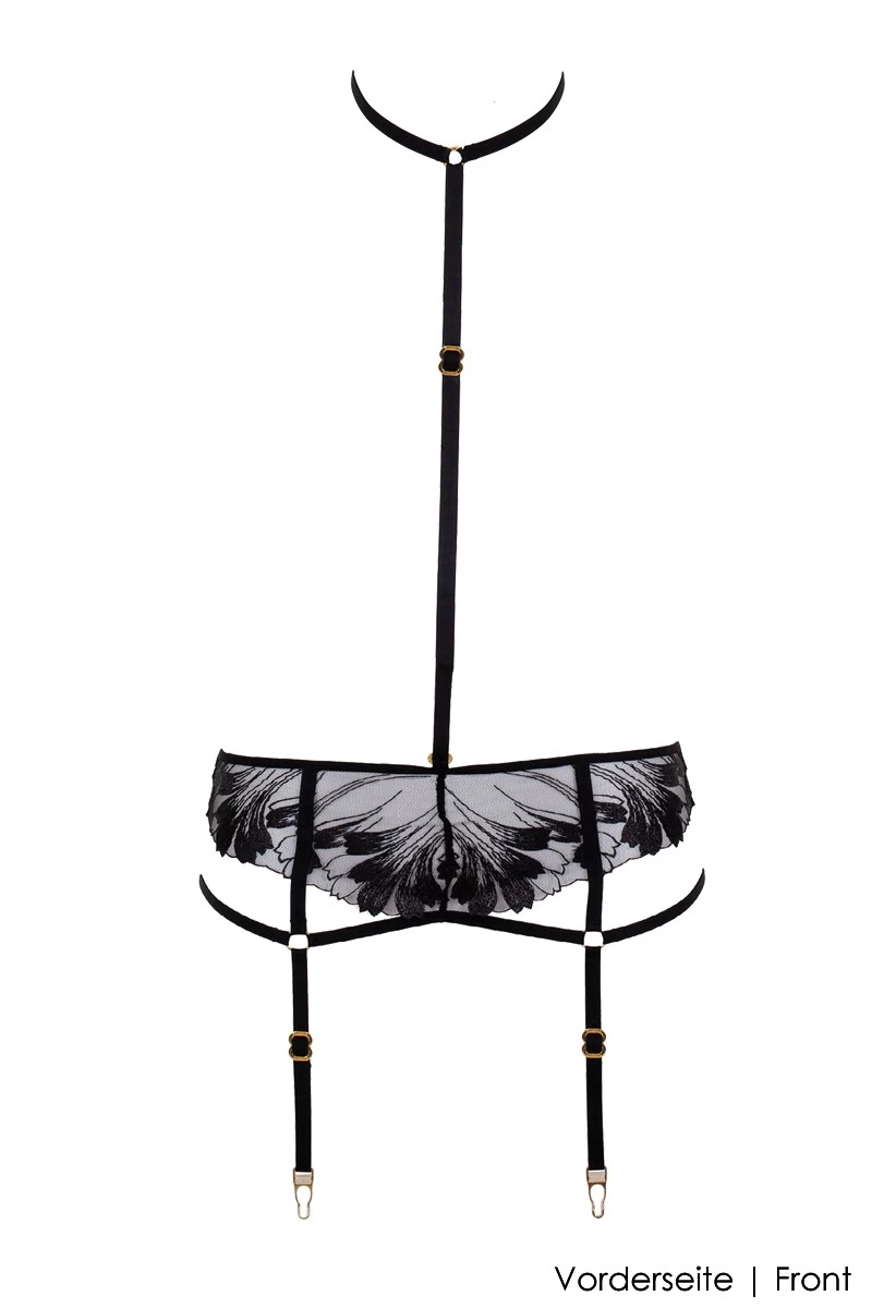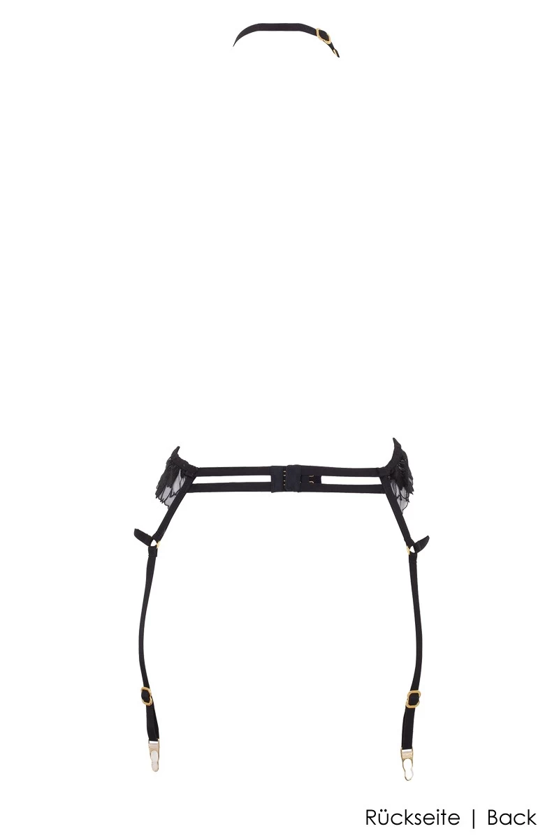 In Kombination mit diesem vielseitig einstellbaren Body Harness verwandelst Du Dein Colette Dessous Set (separat erhältlich) in ein unwiderstehliches Reizwäsche Ensemble. Dank der vier integrierten Strapshalter, kannst Du mit einem Set unserer edlen Strapsstrümpfe (separat erhältlich) Deine Beine verführerisch in Szene setzen. Goldene Ringe und Ösen erlauben die stufenlose Einstellung an Deine individuellen Maße.