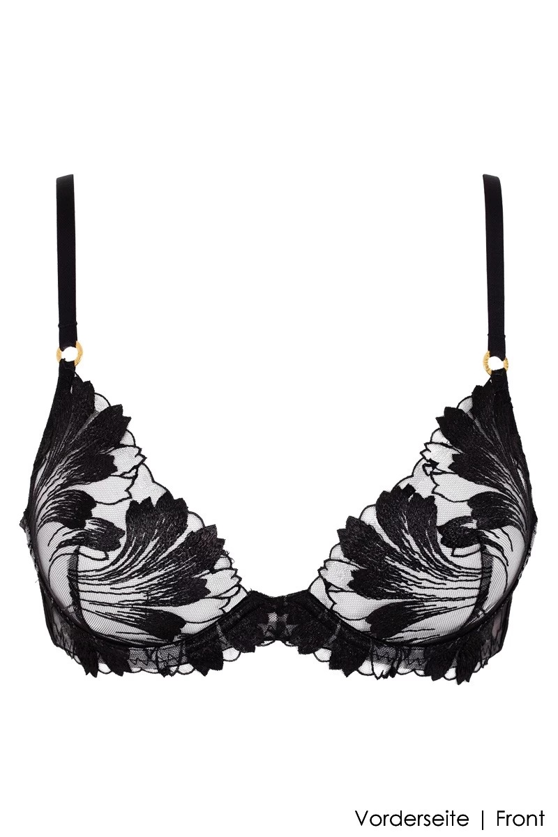 Du bevorzugst den Tragekomfort eines unwattierten Bügel BH? Dann wirst Du bei uns fündig! Der wunderschöne Colette Bügel BH aus floral besticktem Tüll begeistert durch sein modisches Design mit sinnlichen Transparenzen und eine Leichtigkeit die Dir im Alltag viele Vorteile bietet. Luftig und elegant, fügt sich der BH spielend in Deine Outfits ein und hinterlässt auch als edle Reizwäsche einen bleibenden Eindruck. Wir empfehlen Dir die Kombination mit dem passenden Colette String, Slip und Body Harness um die vielseitigen Einsatzmöglichkeiten des BH voll ausschöpfen zu können.
