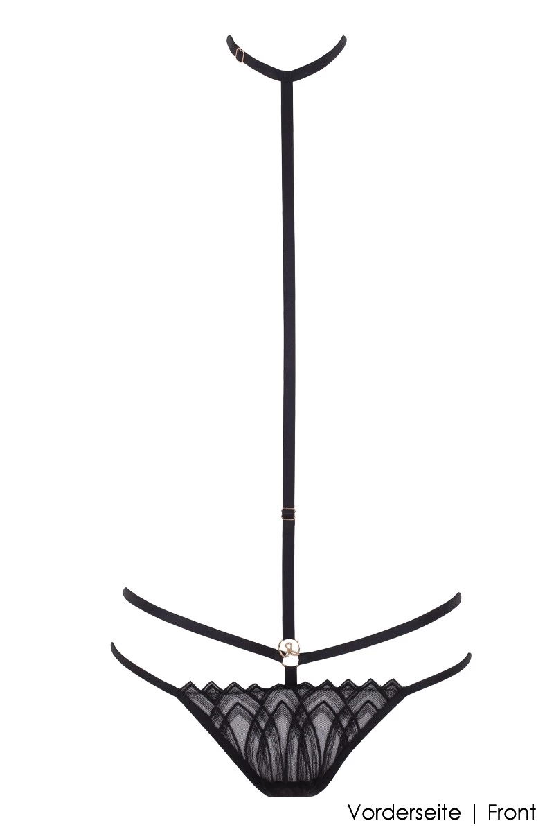 Der Lana Harness String mit offener Rückseite im sexy Bänder-Design erzeugt einen ganz besonderen Lingerie Look. Das optional zu befestigende Harness ist in der Länge durchgängig verstellbar und trägt sich angenehm am Hals. Das sinnlich transparente Unterteil aus floral besticktem Tüll ist ebenfalls ein echter Blickfang und sollte am besten mit dem passenden Lana Bügel BH getragen werden. Nutze unsere „Complete the Look“ Funktion und entdecke die Möglichkeiten!