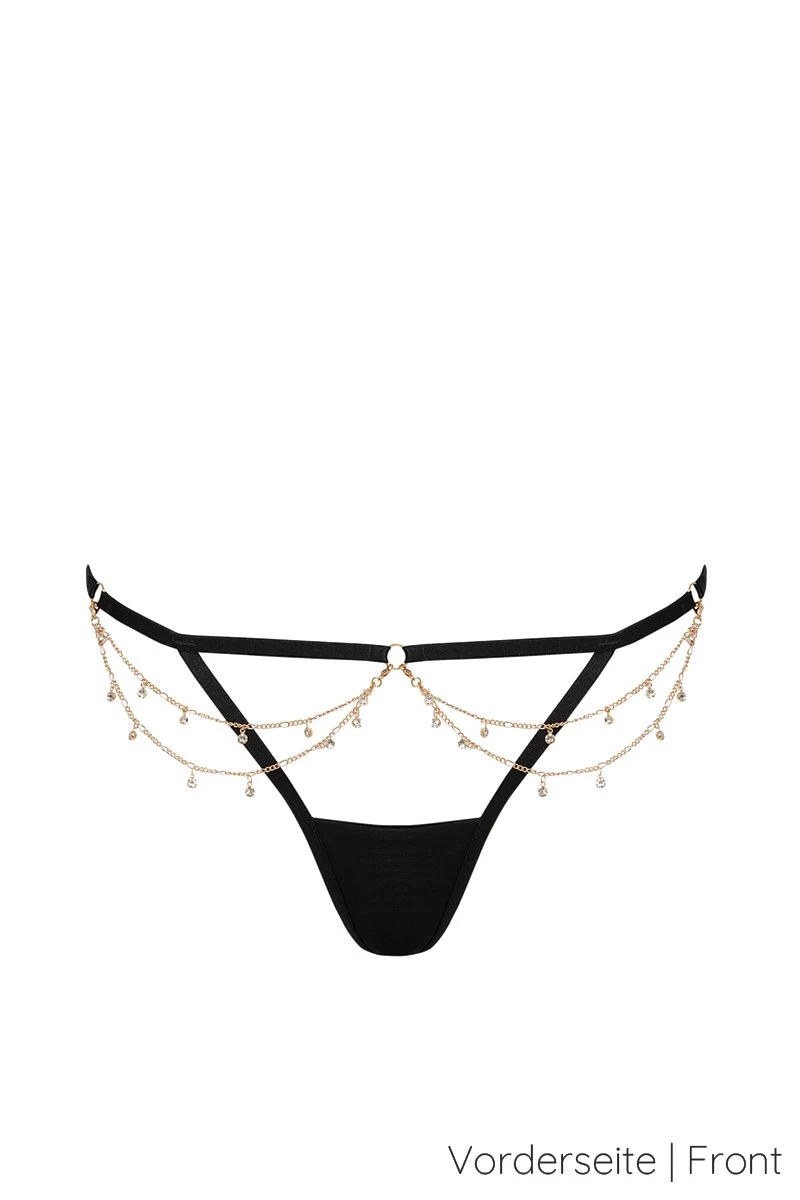 - Sexy G-String aus Mesh-Gewebe mit dekorativen, gold glänzenden Ketten und silbernen Strasssteinanhängern