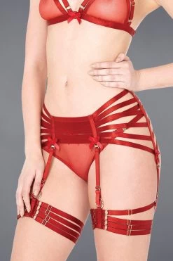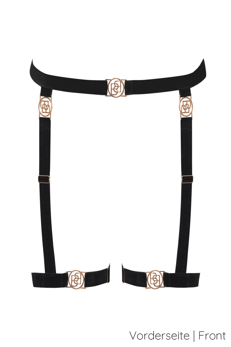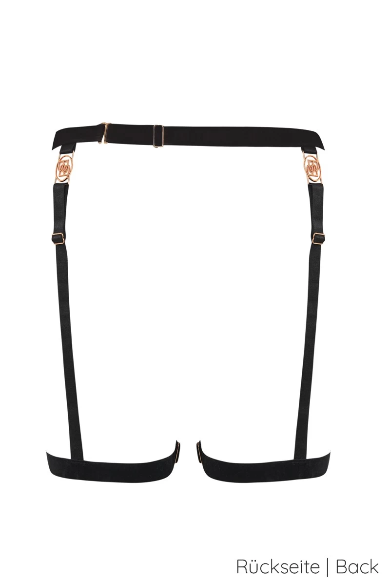 Im Set mit den passenden BHs und Unterteilen aus dem „Complete the Look“ Produktkarussell, läuft dieses spektakuläre Oberschenkel-Harness zur absoluten Höchstform auf. Mit gold glänzenden Schmuckdetails veredelt, bietet sich Dir hier ein sexy Glamour Look der an die 80er und 90er erinnert. Unverkennbar im Design sind auch die Einflüsse aus der elektisierenden Welt des Bondage. Der raffinierte Bänderlook eignet sich einfach bestens dafür Deiner Weiblichkeit einen sinnlichen Rahmen zu geben. Trau Dich etwas Neues auszuprobieren und freue Dich auf den magischen Effekt der Dich und Deine/n Partner/in erwartet.