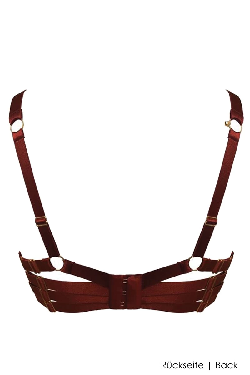 Der Bordelle Signature Line Push up BH aus edlem Seidensatin formt mit seinen integrierten Bügeln und Push up Polstern ein volles, attraktives Dekolleté. Der glänzende Seidensatin auf den wattierten Cups harmoniert hervorragend mit dem „strappy“ Bondage Design der Rückseite. Die verstellbaren, elastischen Bänder sind mit 24K Echtgold beschichteten Schmuckdetails verbunden und zeugen von der herausragenden Qualität dieses Luxus BH´s. Das für die Marke Bordelle typische Bänder-Design der Rückseite, ermöglicht eine flexible Anpassung des BH´s und eine alternative Tragevariante im „X“ Design (siehe Fotos). Damit ist der der Push up BH der Signature Line auch bestens als Geschenk geeignet.