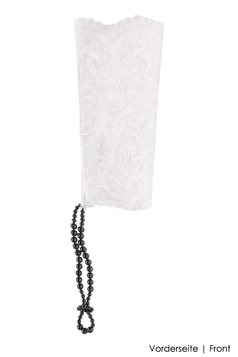 - Erotischer Handschuh aus weisser Spitze mit integrierter, schwarzer Perlenkette