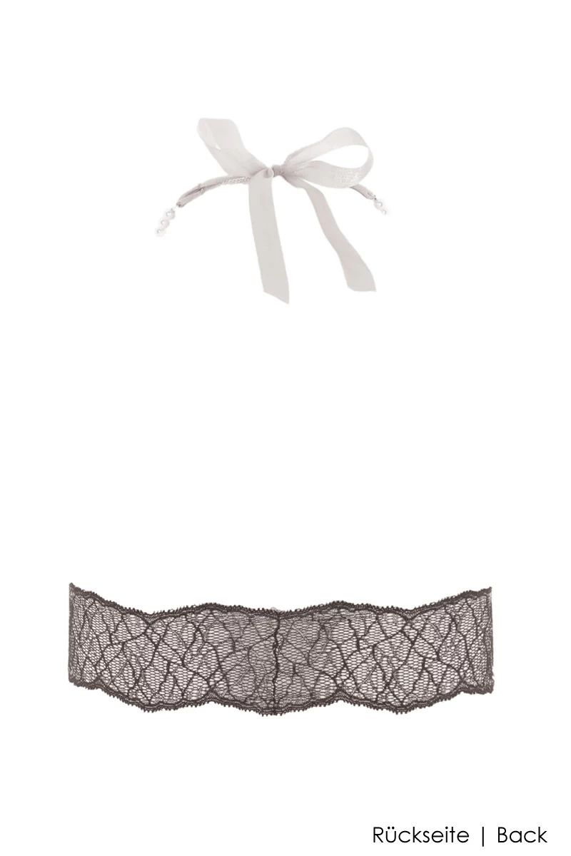 Passend zu unserer Auswahl an Sydney Line Perlenstrings, empfiehlt sich dieser wunderschöne Bralette BH aus italienischer Spitze mit eingewebten, glänzenden Lurexfäden. Der BH wird am Hals mit einer wunderschönen Perlenkette aus mallorquinischen Manacor Perlen geschlossen. Dabei kommt eine dekorative Satinschleife im Nacken zum Einsatz. Das Unterbrustband ist elastisch und garantiert eine optimale Passform. Ein kleines Satinschleifchen mit gold glänzendem Bracli Logo Anhänger ziert die vordere Mitte des sinnlich transparenten BH´s.