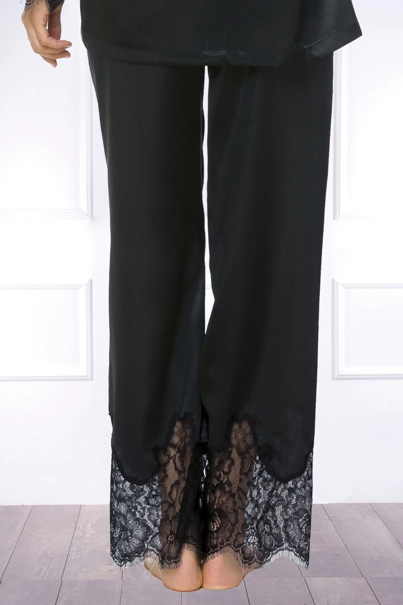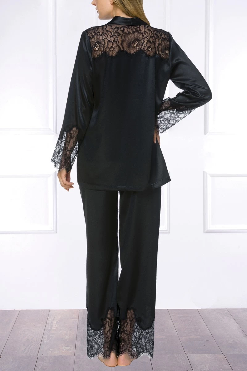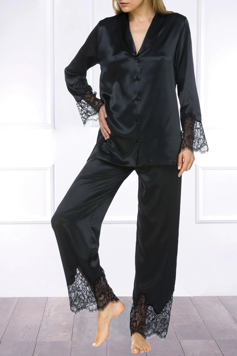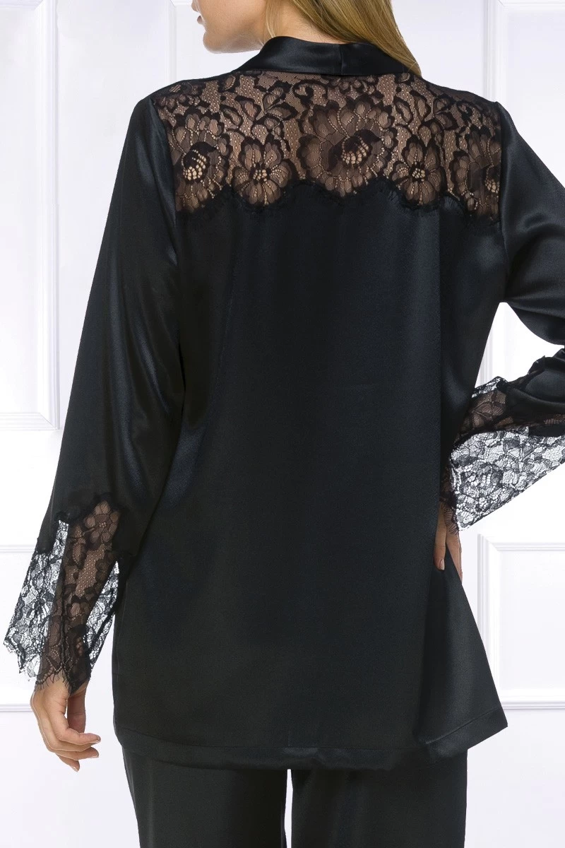 Dieser schwarz glänzende Satin Pyjama ist ein echter Blickfang und bietet Dir ein ganz spezielles Tragegefühl. Wir können Dir nur empfehlen in die Welt der gehobenen Nachtwäsche einzutauchen und den Unterschied hautnah zu erleben. Auch für Deinen Partner ist die Berührung des weichen Satins eine wahre Freude. Damit aber nicht genug … kunstvoll eingesetzte Spitze im Rücken, den Ärmel- und Hosenabschlüssen, verleihem dem Pyjama Set eine traumhafte Leichtigkeit und Eleganz. Dieser außergewöhnliche Pyjama wird in einer präsentativen Schachtel geliefert und eignet sich auch prima als eine stilvolle Überraschung zum besonderen Anlass.