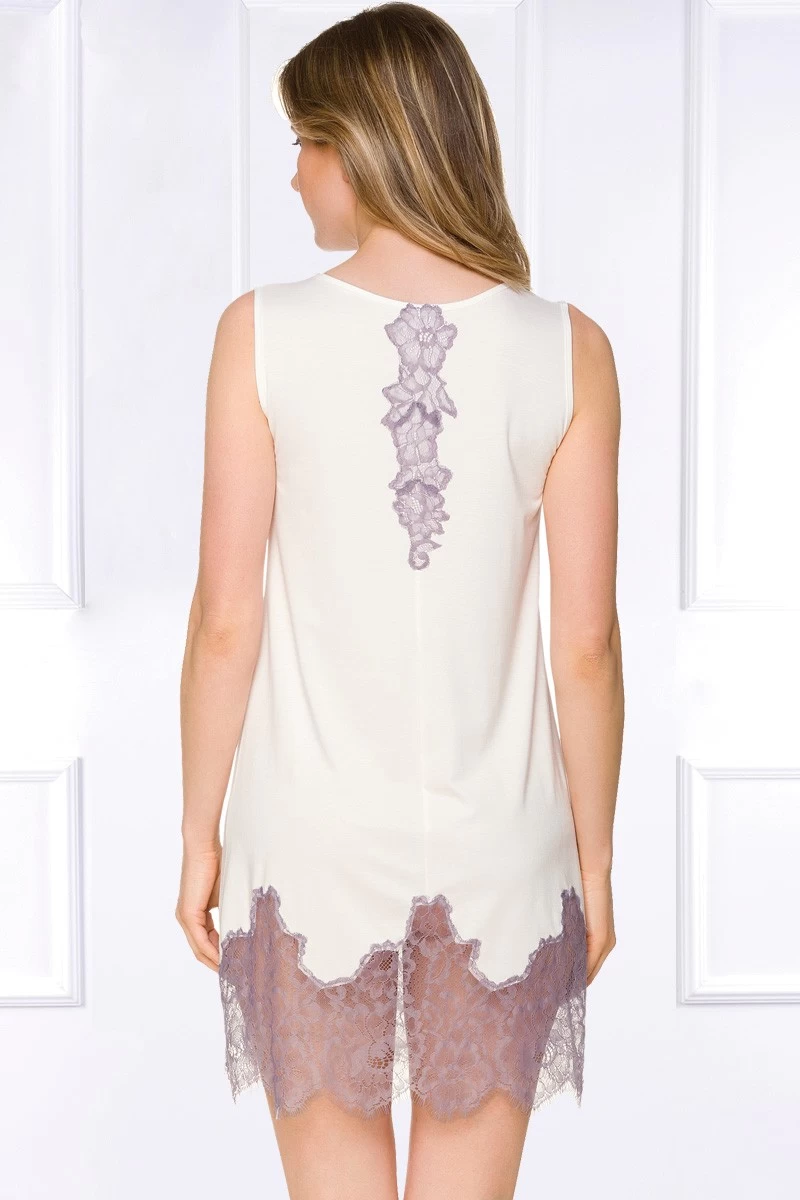 Das creme-/ champagnerfarbene Micromodal Nachthemd Tia bietet Dir erholsame Stunden höchsten Komforts. Hochwertig von Hand verarbeitet und zeitlos elegant, wurde edle Spitze kunstvoll appliziert und am Saum aufwendig eingearbeitet. Seidig weich im Griff und luftig geschnitten ist das ärmellose Tia Nachthemd auch in warmen Sommernächten eine ausgezeichnete Wahl.