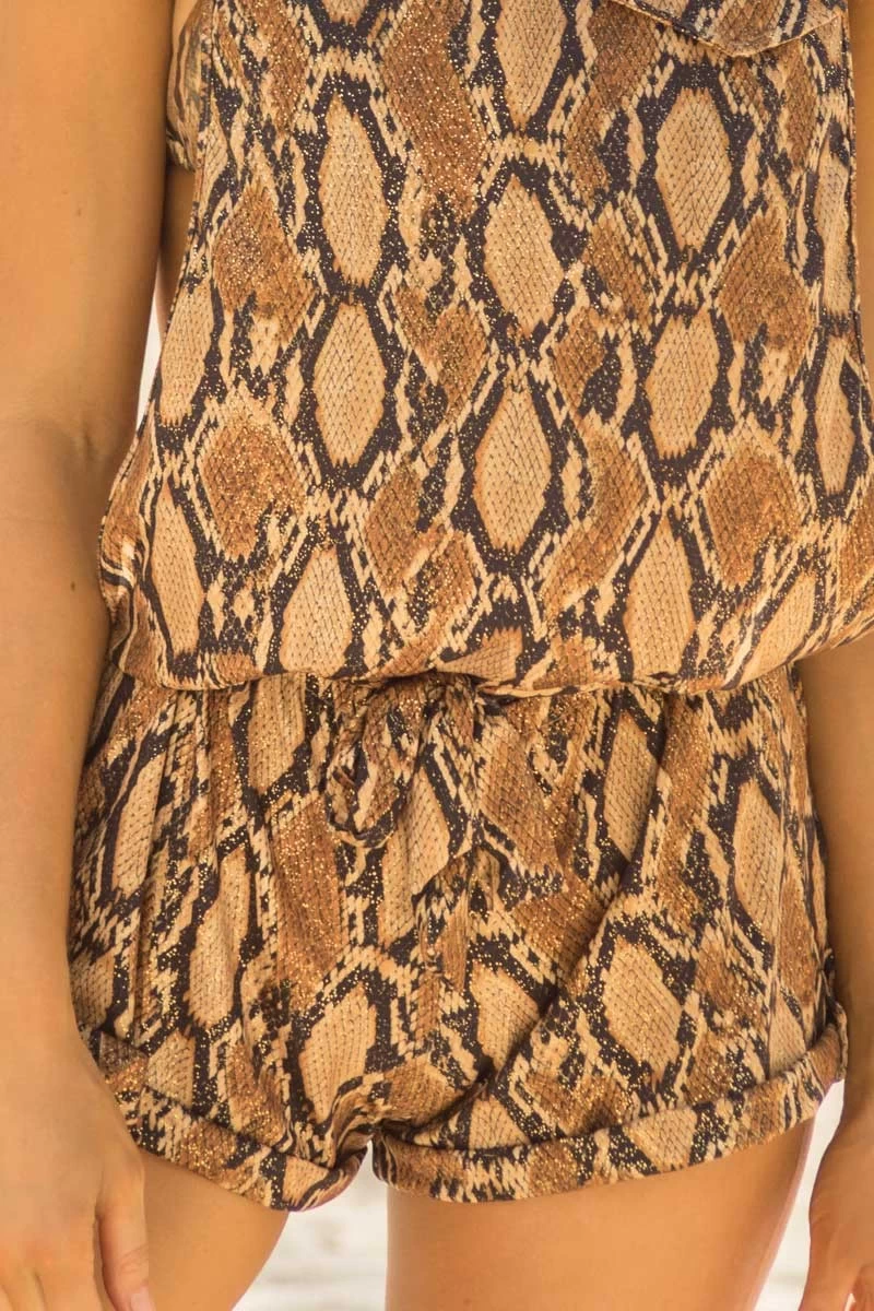 - Gold glänzender Playsuit im Snake Skin Design (Einteiler)
