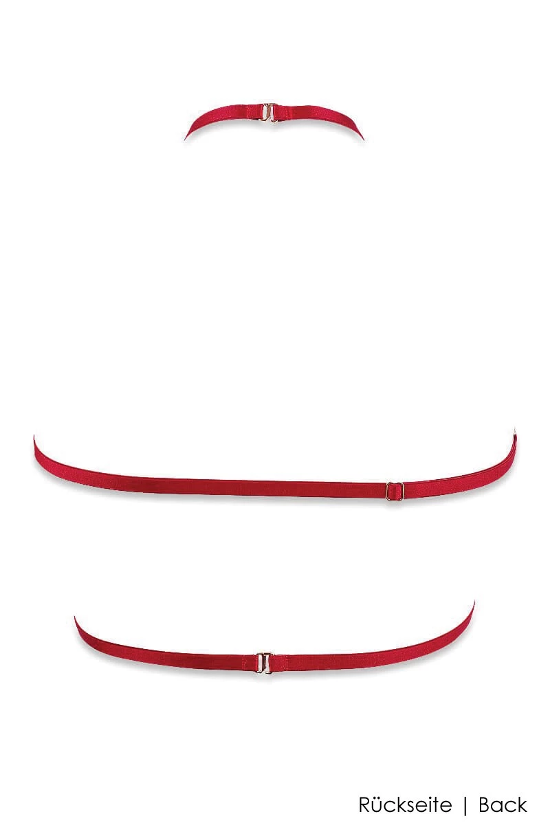 Kombiniere diesen exklusiven Harness BH mit den diversen sexy Unterteilen der Elixir Serie und erzeuge einen unwiderstehlichen Look 100% Made in France. Die feurig roten Tulle Volants im Brustbereich stehen für einen romantisch verspieltes Design, das für sinnliche Spannung und Vorfreude sorgt. Auch die passenden Nipplets findest Du bei uns im „Complete the Look“ Slider.