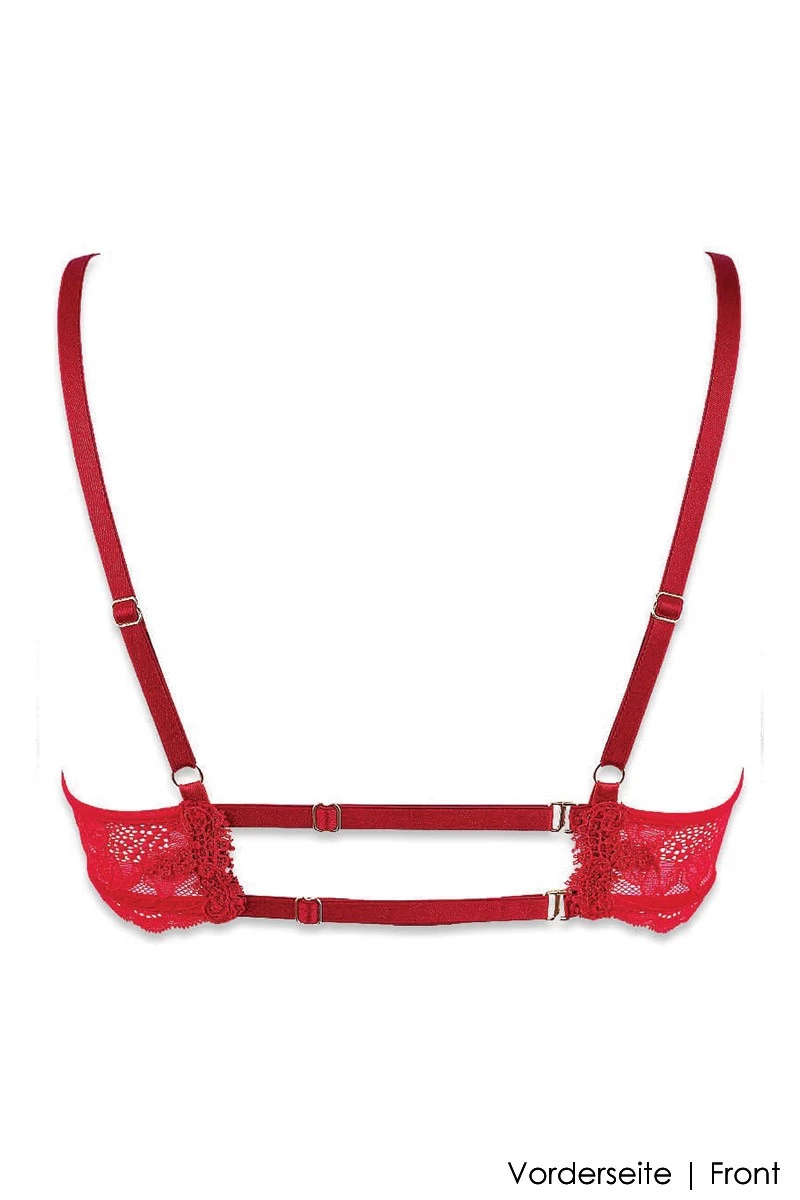 Ihr wollt gemeinsam mehr erleben!? Das Ouvert Design dieses edlen Hebe BH aus französischer Spitze macht genau das möglich! Kombiniere dieses feurig rote Reizwäsche Highlight nach Lust und Laune mit den unterschiedlichen Unterteilen derselben Serie und entdecke die Vielseitigkeit dieses exklusiven Dessous. Die passenden Nipplets haben wir natürlich auch im Programm. Lass Dich von unserem „Complete the Look“ Produkt-Karussell inspirieren und sorge für eine einzigartige Überraschung die für unvergessliche Momente der Leidenschaft sorgt.