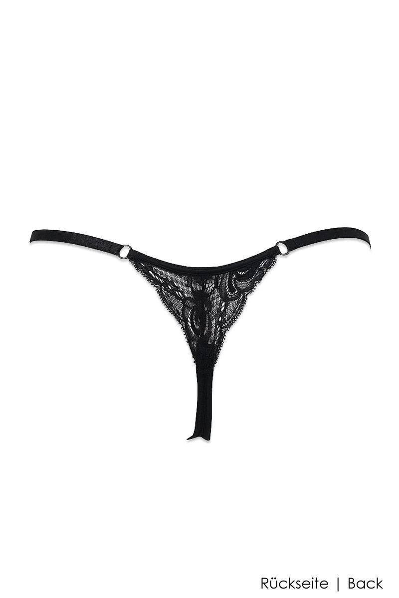 Dieser luxuriöser String ist 100% Made in France und ein absolutes Reizwäsche-Highlight für jede Frau die hochwertige Dessous zu schätzen weiß. Hergestellt aus feinster französischer Spitze und von einem blau funkelnden Swarovski Kristall gekrönt, ist er perfekt auf die BHs und den Strapsgürtel derselben Linie abgestimmt. Der String ist in den Seiten stufenlos verstellbar und bietet Dir in allen Lebenslagen einen exzellenten Tragekomfort. Gönne Dir dieses einmalige Reizwäsche Design und zeige Dich von Deiner sinnlichsten und selbstbewussten Seite.