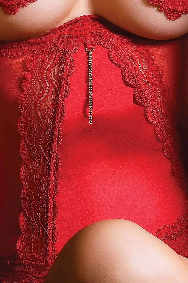 - Exklusives Torselett mit 4 Strapshaltern aus französischer Spitze, Tüll & glänzendem Lycra