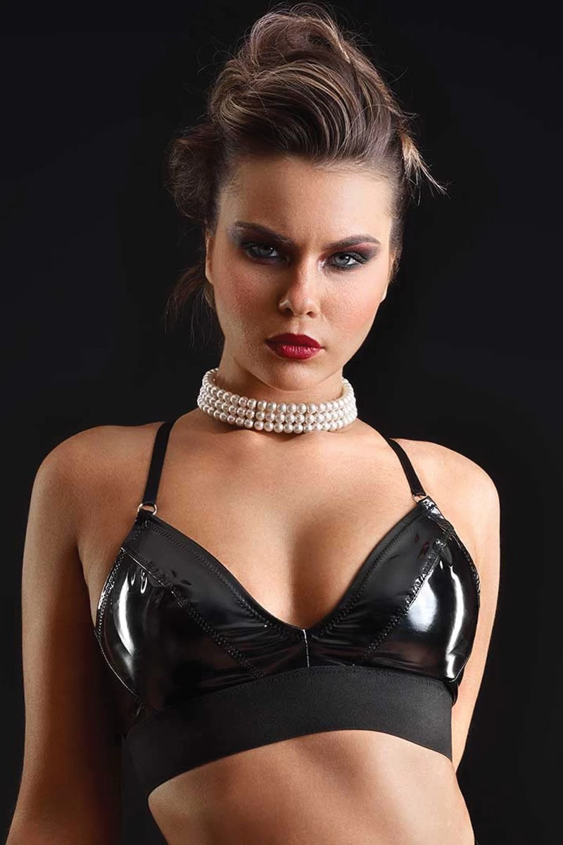 - Außergewöhnlicher Triangel BH aus schwarz glänzendem Vinyl