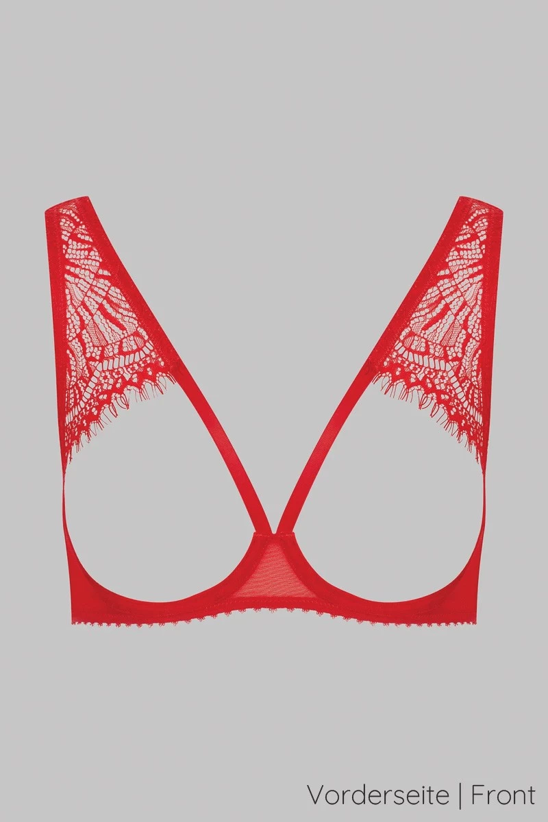 Entdecke unseren verführerischen Ouvert-BH aus feinster „Eyelash“ Spitze und transparentem Mikrotüll in der Farbstellung Rot. Dieser BH ist der ideale Begleiter für spielerische Verführung und sinnliche Momente zu zweit. Die exquisite Kombination aus Spitze und Mikrotüll verleiht diesem BH eine unwiderstehliche Ausstrahlung. Mit seinem offenen Design lädt er zu aufregenden Erkundungen ein und lässt Raum für lustvolle Fantasien. Trage diesen BH und entdecke eine neue Ebene der Leidenschaft und Verführung. Lasse dich von diesem verführerischen Ouvert-BH verlocken und genieße unvergessliche Momente voller Sinnlichkeit und Erotik.