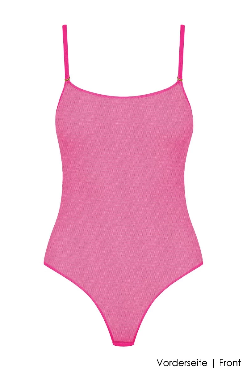 Dieser sexy Stringbody in Neonpink ist von der Mode der 80er Jahre inspiriert. Er ist aus feinstem und elastischem Mikrotüll gefertigt und dank der verführerischen Transparenz des Stoffes, siehst Du einfach zum anbeißen gut aus! Der elastische Body mit hohem Beinausschnitt lässt Deine Beine besonders schön und lang aussehen. Für einen “show-stopping” Look empfehlen wir Dir die vielseitigen Kombinationsmöglichkeiten mit den ergänzenden Corps a Corps Neon Artikeln. Ein Blick auf das „Complete the Look“ Produktkarussell hält diverse Styling-Optionen unterschiedlichster Neonfarben für Dich bereit. Die verstellbaren Schulterträger sind abnehmbar und können durch die andersfarbiger Bodies und BH´s ausgetauscht werden.