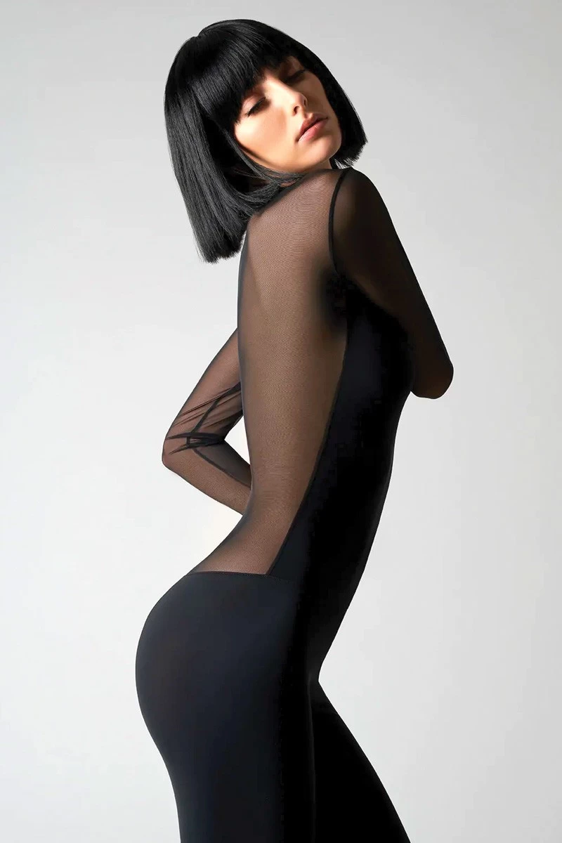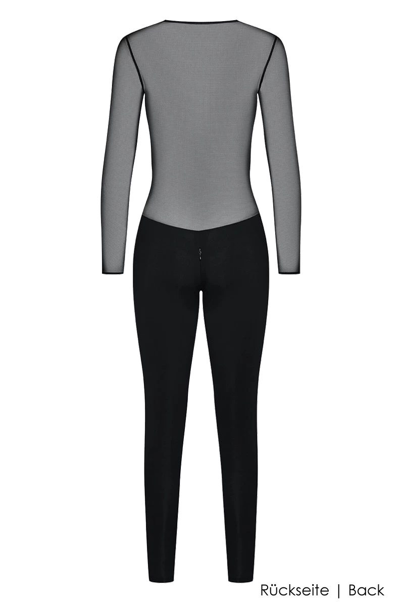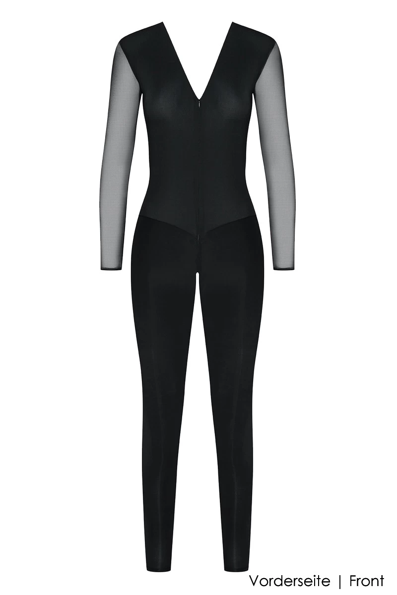Aus feinster Mikrofaser und transparentem Tüll gefertigt, schmiegt sich dieser modische Catsuit optimal an Deinen Körper. Elegant und sexy, kann der Catsuit als außergewöhnliche Loungewear, als modisches Party Outfit oder in der Funktion der Reizwäsche getragen werden. Ein verdeckt eingesetzter Reißverschluss der zwischen den Beinen bis über den Po verläuft, bietet Dir alle Freuden und Möglichkeiten des spontanen Liebesspiels. Ein besonderer Blickfang ist die transparente Rückenpartie inklusive der Ärmel!