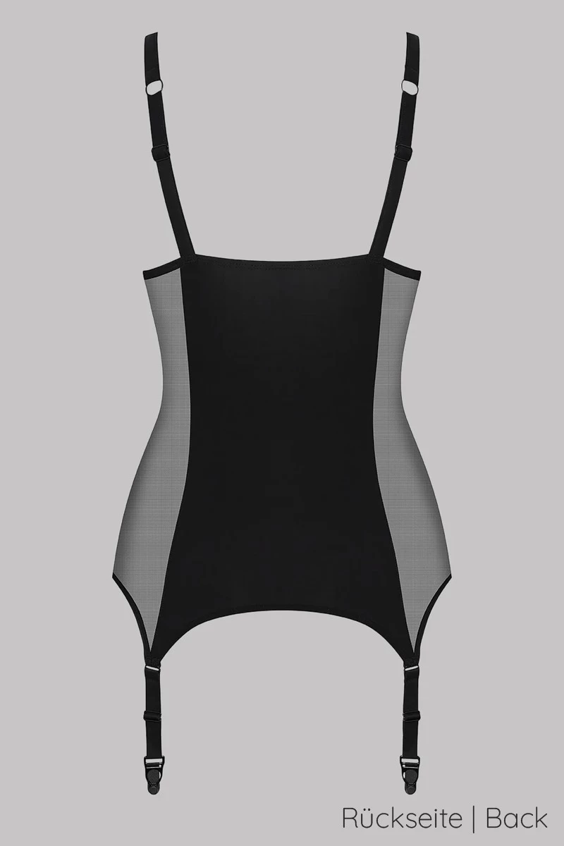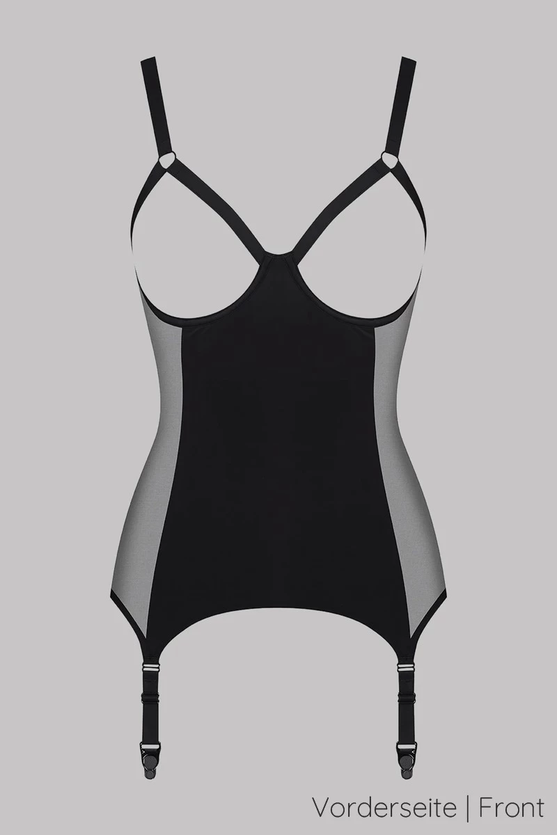 Dieses brustfreie Ouvert Torselett mit integrierten Strapshaltern ist ein echtes Reizwäsche Highlight aus Frankreich. Dank des offenen Design ergeben sich vielfältige Möglichkeiten das Liebesspiel aufregend zu gestalten. Das transparente Mesh an den Seiten schmeichelt dabei Deiner Figur und steht im wunderschönen Kontrast zum tiefen Schwarz des Lycra. Elastisch schmiegt sich das Torselett an Deinen Körper und die vier integrierten Strapse halten Deine Nylons zuverlässig in Position. Gönne Dir Diese moderne Interpretation des klassischen Torselett und mache Deine/n Partner/in eine ganz besondere Freude.