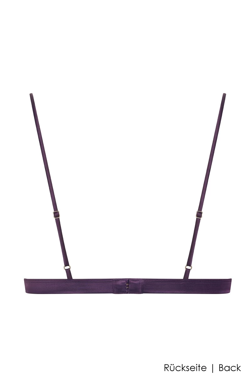 Neben dem Villa Satine Bügel BH ist dieser exklusive Triangel BH eine bügellose Option die ebenfalls einen exzellenten Tragekomfort bietet. In Kombination mit den passenden Unterteilen derselben Serie, erlebst Du die Eleganz des Designs in seiner schönsten Form. Glänzender Satin einem wunderschönen Violett und die dazu passende Spitze sorgen für ein traumhaftes Tragegefühl ohne Abstriche beim Design.
