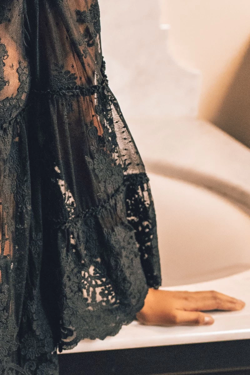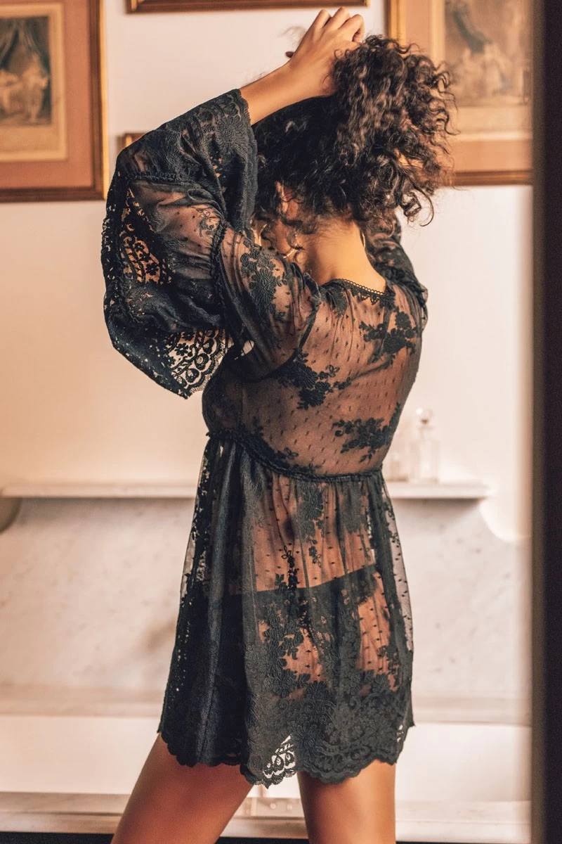 Wir sind begeistert von diesem wunderschönen Design. Dieses umwerfende Babydoll aus feinster französischer Calais Spitze versteht sich bestens darauf Deine Reize in Szene zu setzen und mit einem exzellenten Tragekomfort zu verwöhnen. Dank des elastischen Unterbrustbands sitzt das Kleidchen optimal am Körper und zaubert ein sinnliches Dekolleté das von einem dekorativen Schnürungsdetail gekrönt wird. Luftig leicht und locker am Körper herabfallend ist das Design so raffiniert wie unkompliziert. Rundum sinnlich transparent verleihst Du Deiner Weiblichkeit einen gebührenden Rahmen und genießt die volle Aufmerksamkeit Deines Partners bzw. Deiner Partnerin.
